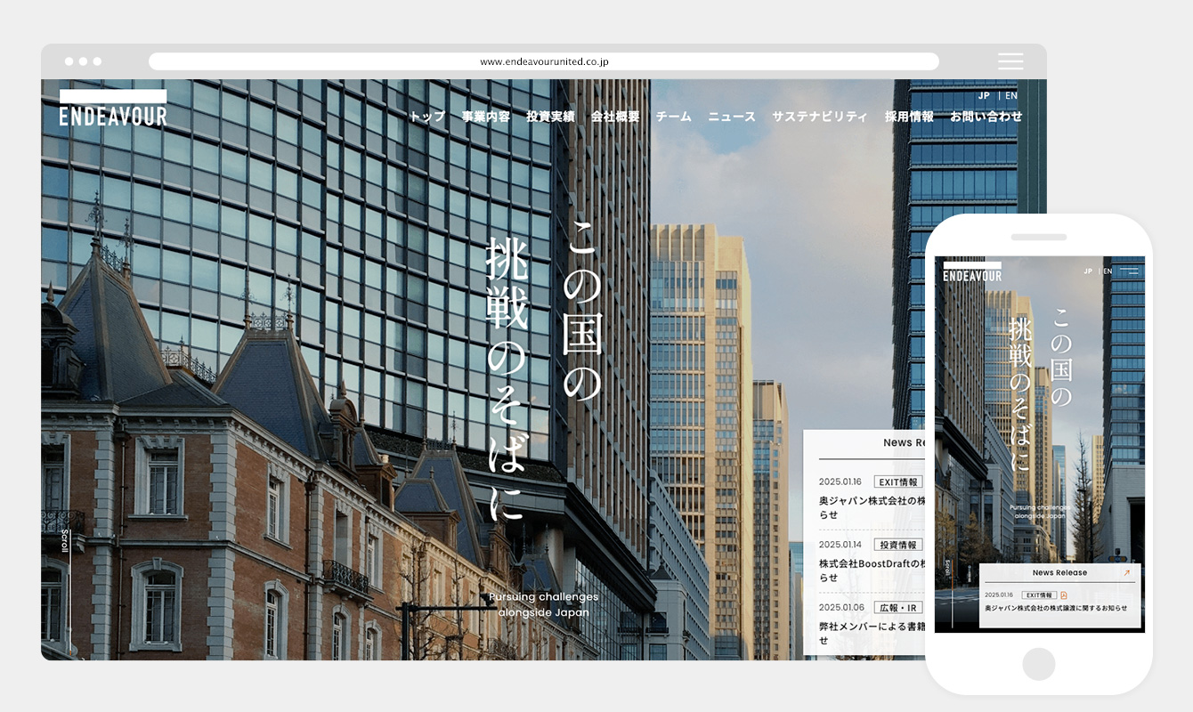 アートディレクションを担当した『ENDEAVOUR UNITED コーポレートサイト』がローンチしました。